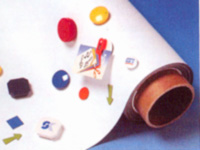 Flexible, kunstoffgebundene Folie mit eingelagertem Ferritpulver, einseitig weiß PVC beschichtet, bedruckbar und beschriftbar.