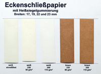 Eckenschließpapier mit Heißsiegelgummierung für die Herstellung von Kartonagen.